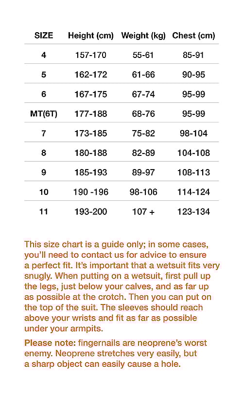 | Type of wetsuit | Mid-level wetsuit (Intermediate) |